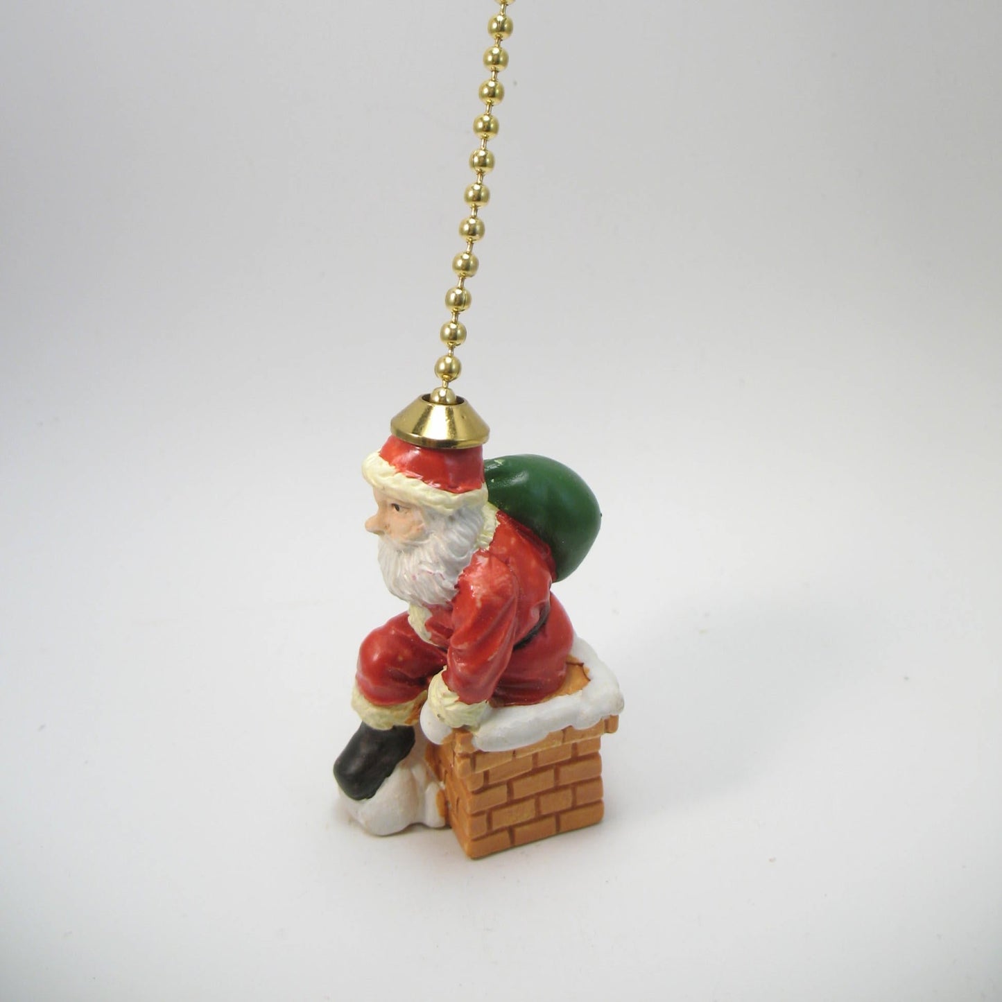 Fan Pull Small Resin Santa on the Chimney Brass Chain SFP23