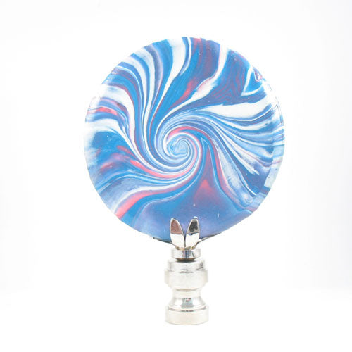 Lamp Finial , Blue, White Polymer Clay Swirl