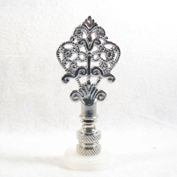 Lamp finial, shiny chrome filigree arrow. measures 3" tall overall. Fits standard lamp harp.