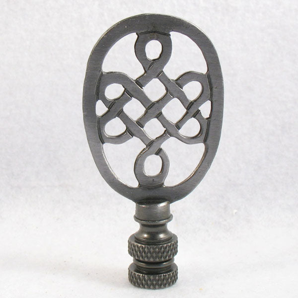 Lamp Finial: Pewter finish life know. Measures 3" tall overall. On a swivel that fits a standard lamp harp.